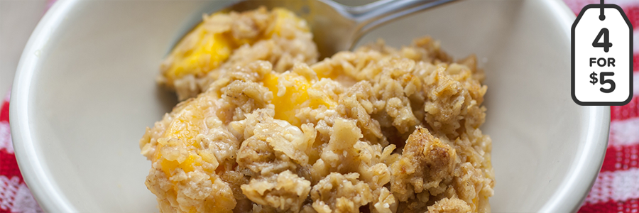 A comforting breakfast that combines tender baked peaches with hearty oatmeal. |