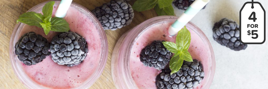 A healthy and refreshing smoothie featuring bananas and your choice of berries.Makes 4 servings for $5.