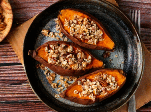 No mashing required! Just roast, slice, and top with homemade streusel topping.